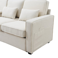 The PRYLON Sofa features a solid wood frame and high-density sponge cushions, wrapped in premium linen fabric for long-lasting comfort and durability.