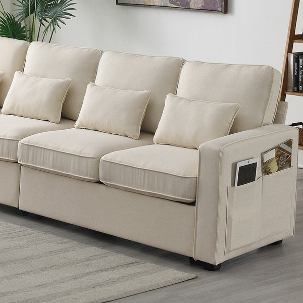 - Expertly crafted with premium linen fabric, this sectional sofa offers superior comfort with its moisture-absorbing and breathable properties. With its thick and durable material, rest assured that it will withstand wear and tear, even with extended use. Say goodbye to uncomfortable, stuffy seating and hello to long-lasting, comfortable relaxation.
