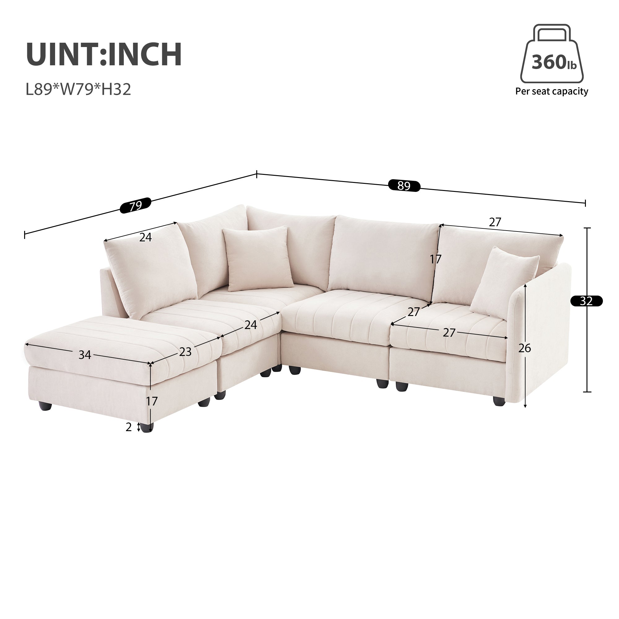 • VORIXA 89" Sectional Sofa boasts premium fabric, providing excellent breathability and durability. The streamlined metal insert connection design allows for effortless assembly without sacrificing stability. Additionally, it is constructed with high-density sponge and pocket springs, ensuring superior support.