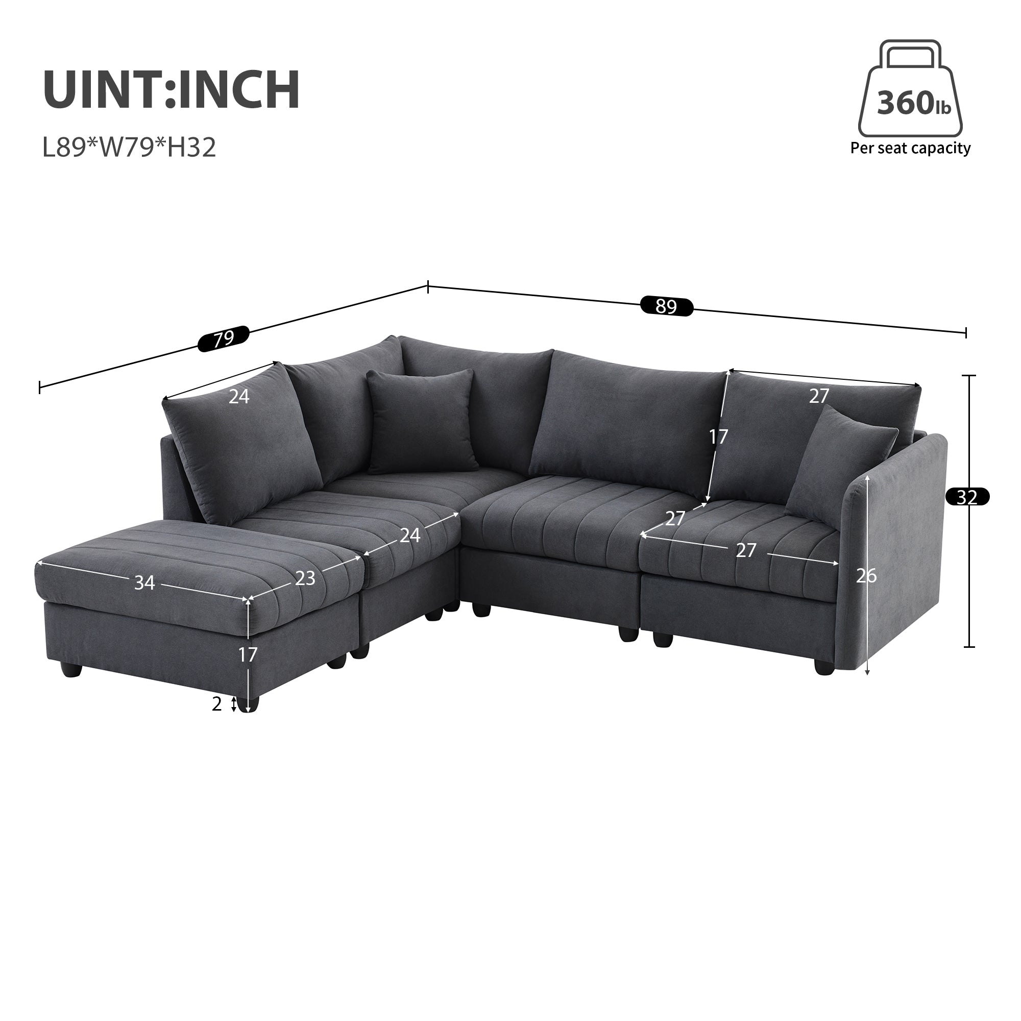 The VORIXA 89" Sectional Sofa features a removable ottoman, which can be used to create an L-shaped or U-shaped design. This allows for flexible furniture arrangements, as you can easily move the ottoman and sofa to different locations within a room or to different rooms entirely. The sofa's adaptable design also offers greater comfort, as the position of the footstool can be adjusted to suit individual preferences. In summary, the addition of a movable ottoman to your sofa can greatly enhance the functionality and comfort of your living space.